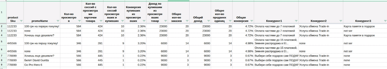 With the help of this report, “Citrus” Category Managers track competitors' promotions and change the conversion when using promotions on their own goods. This information is used when pricing goods on the site citrus.ua.