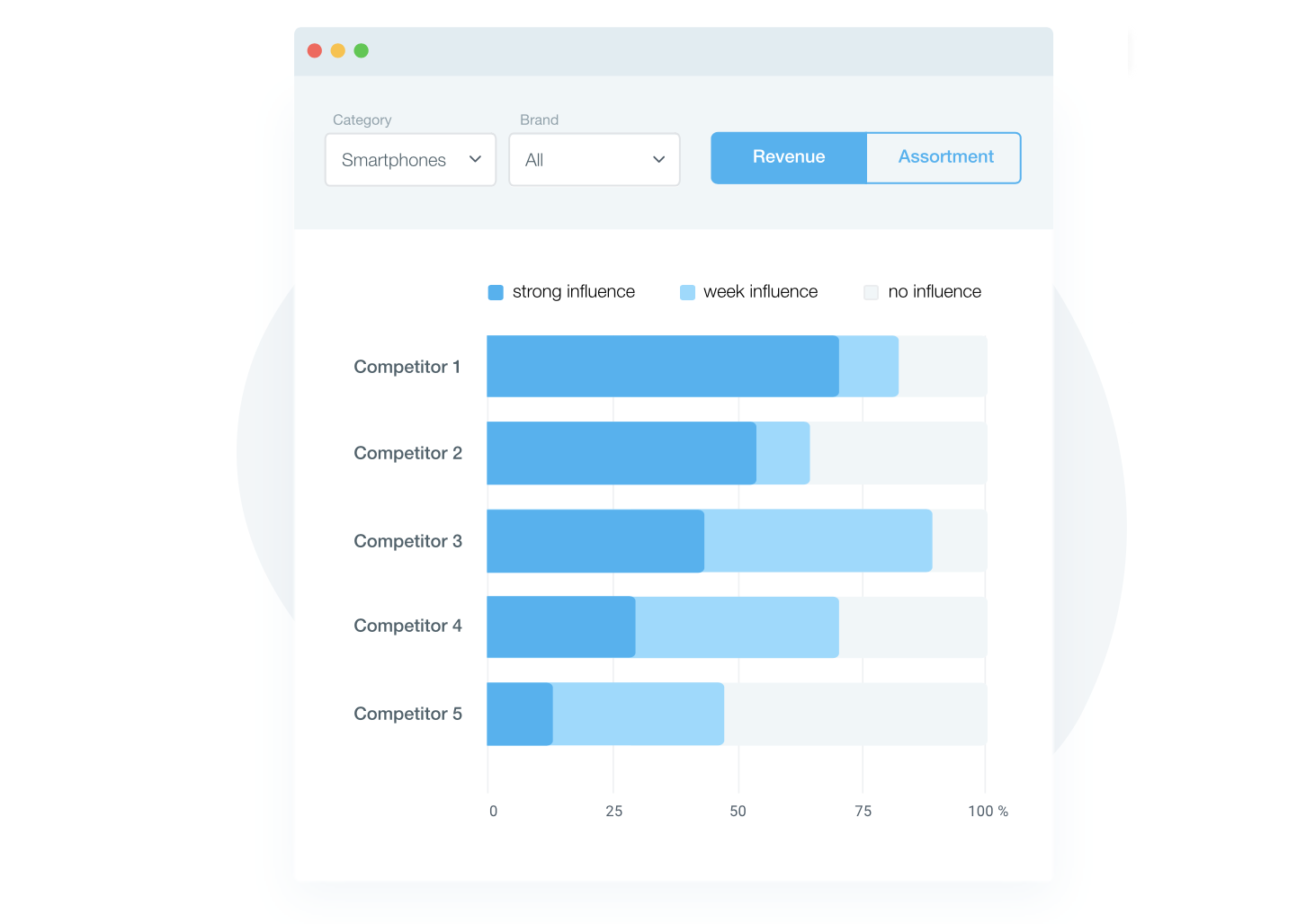 Using Competera pricing platform, retailers can identify the strength of each competitor’s negative impact on business sales. To do this, we use an algorithm called “True competitors.” Based on three main factors (competitors’ prices, your price, and sales), it compares every product in your portfolio against competitors who put pressure on your sales and identifies the root causes of the present situation. What’s most importantly, thanks to ML technologies, the algorithm can match prices even where they are difficult to identify, e.g., marketplaces.