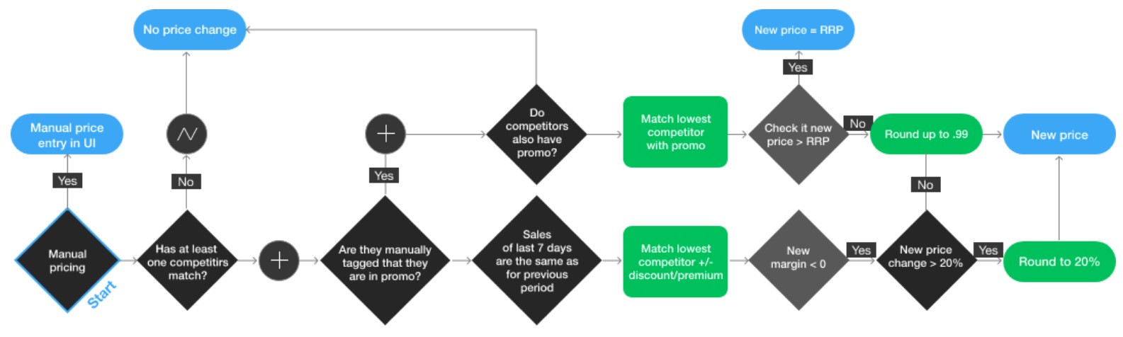 We’ve already discussed how Competera helps to identify the true competitors and segment products into different buckets. Now, you might think ”Okey, I know which competitors impact my sales the most and which products are the true KVIs, but how can I use this knowledge to get a competitive advantage and increase the market share?”. The short answer: you can reach these goals with pricing decision trees and smart rules. Let's make it more clear.