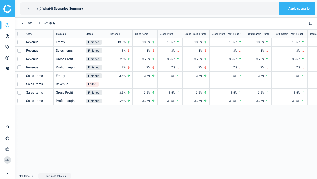 On the contrary to traditional Excel-based scenario modeling, Competera platform, the only thing its users have to do is to specify the parameters of scenarios they would like to test, run the optimization scenarios in parallel, and compare the impact of each scenario.