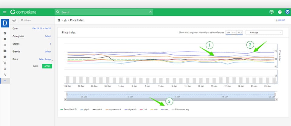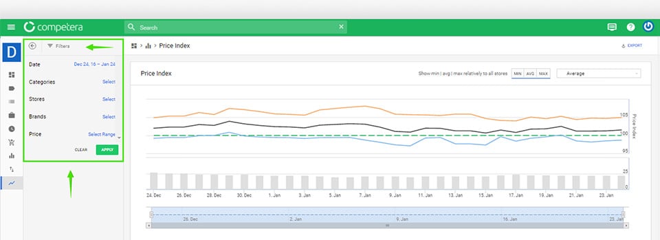 Employing Price Index, you know everything about the price positioning, and the sensitivity of your online store towards the market and certain players.
